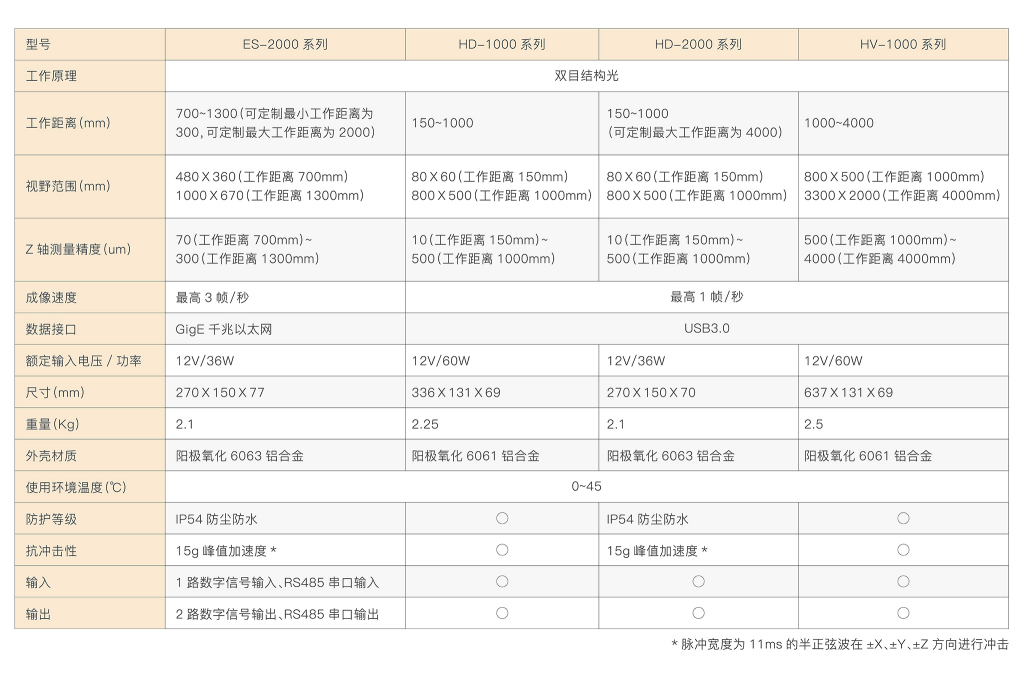 | 3D工業(yè)相機(jī)參數(shù) |