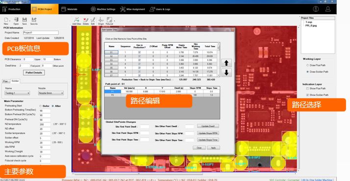 利用PCB板掃描圖片為底,在圖片上畫出運動路徑即可,操作簡單方便,并配備完善數(shù)據(jù)庫、記錄功能。